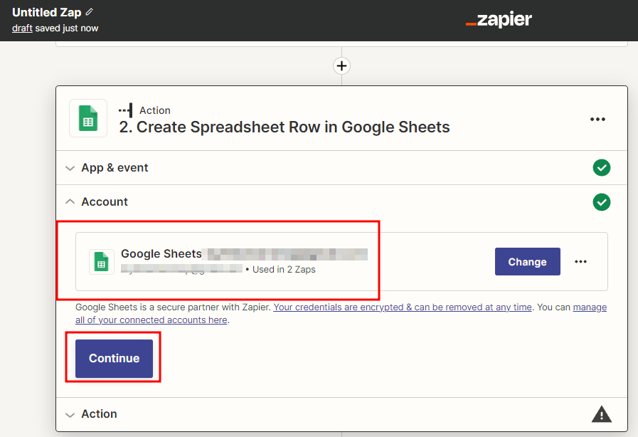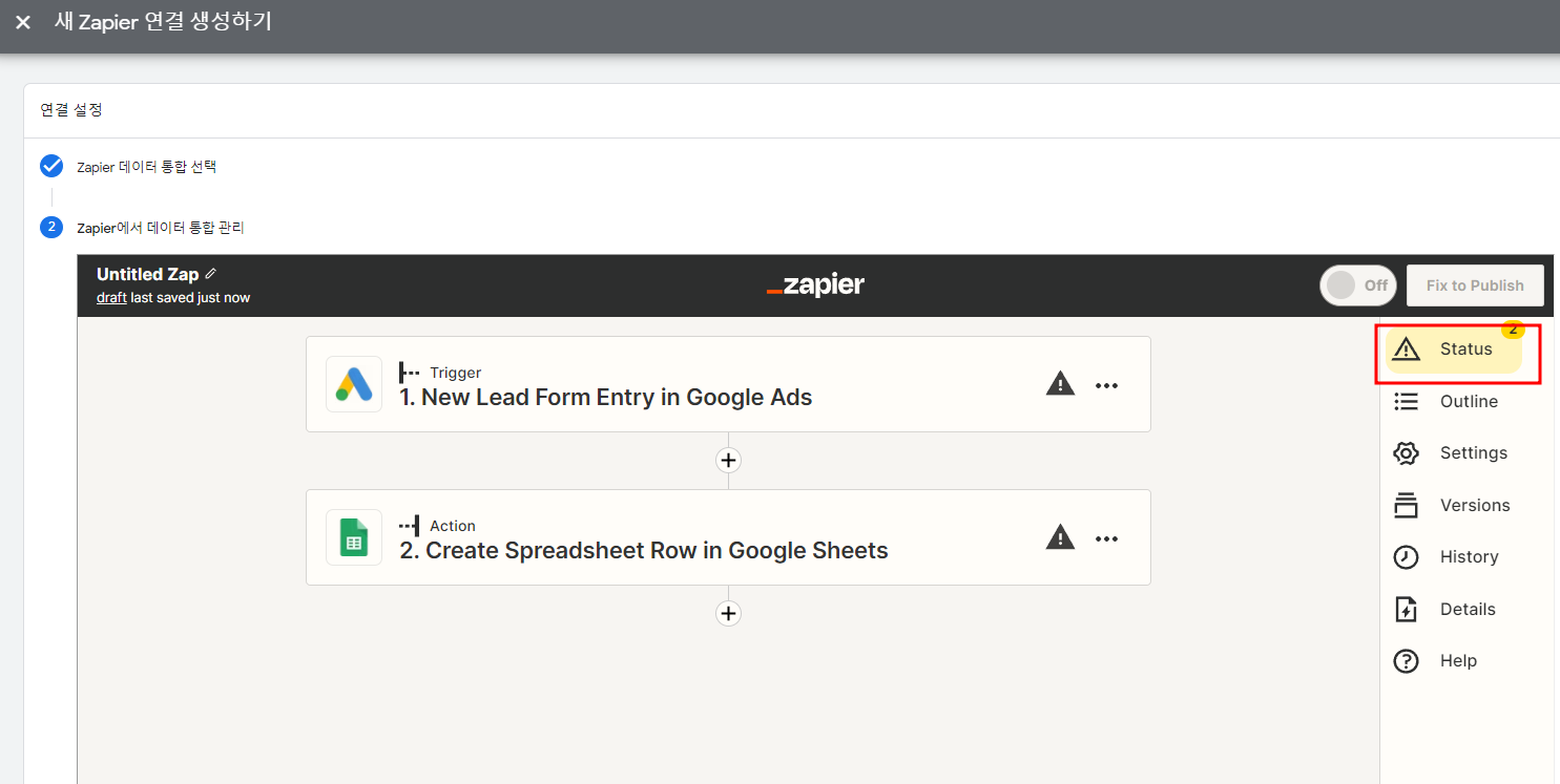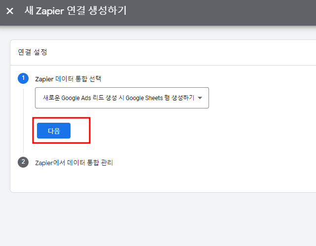 Zapier 를 이용한 Google Sheets 데이터 통합 생성 클릭