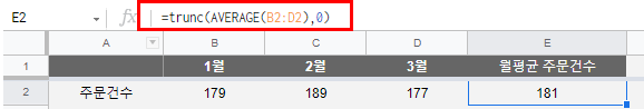=TRUNC (값, 소수점이하 몇자리까지만 남길건지)