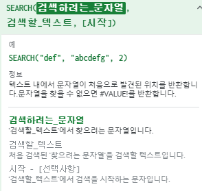 SEARCH 함수는 찾고자 하는 단어가 있으면 발견된 위치의 숫자를 반환하고