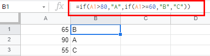 =if(A1>80,"A",if(A1>=60,"B","C"))
