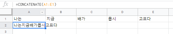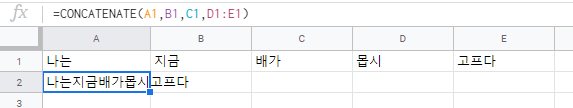 CONCATENATE 함수는 엑셀에도 있는 함수인데 위 3가지 방법 중 "1번만 가능"해요.