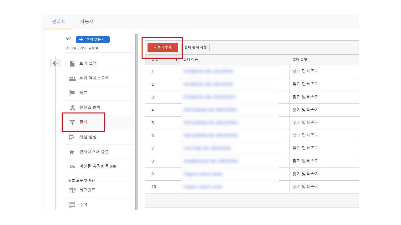 1. ⚙관리 > 보기 > 필터 > 필터추가 버튼