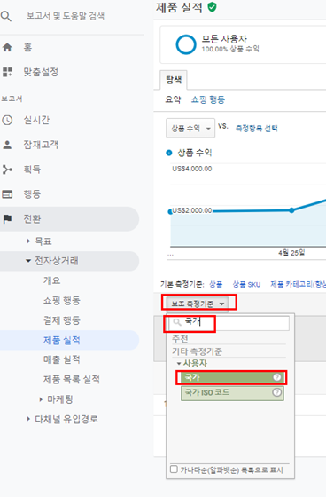 보조 측정 기준에서 '국가' 추가