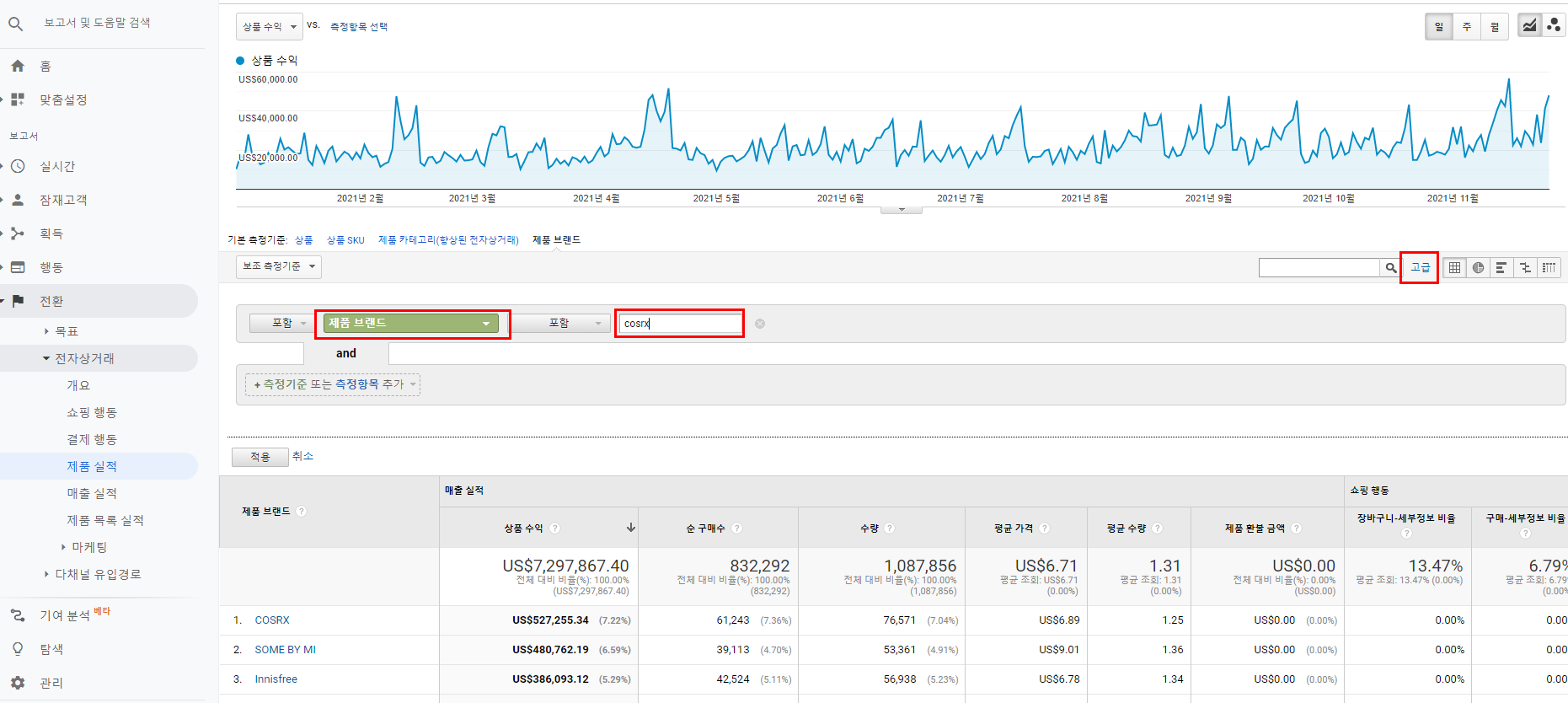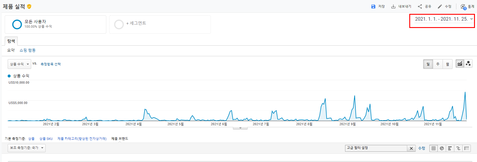이렇게 설정하면 구글 애널리틱스에서 특정 브랜드의 특정 국가 매출 확인 가능!
