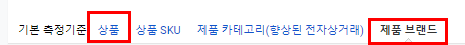 전환 -> 전자상거래 -> 제품실적 으로 들어오면 기본 측정기준이 '상품'으로 되어있는데