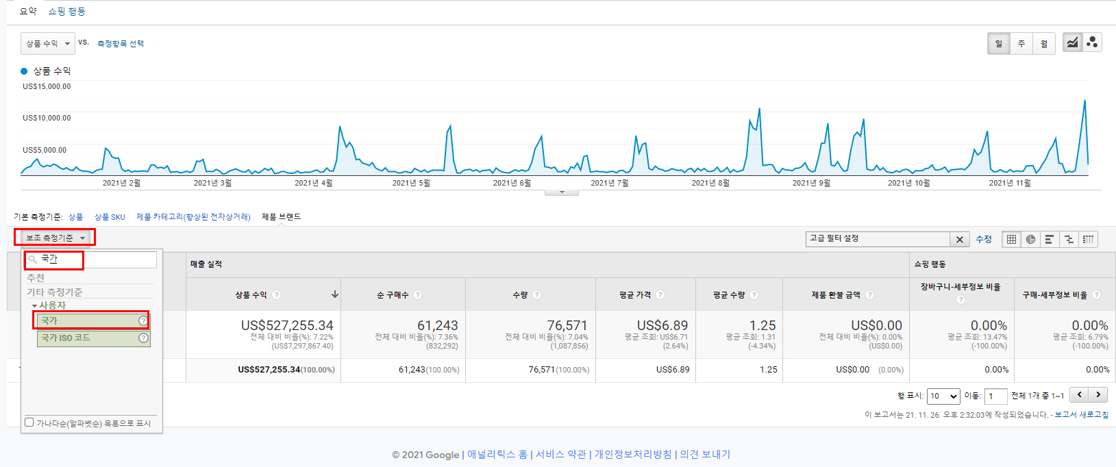 이렇게 설정하면 구글 애널리틱스에서 특정 브랜드의 특정 국가 매출 확인 가능!
