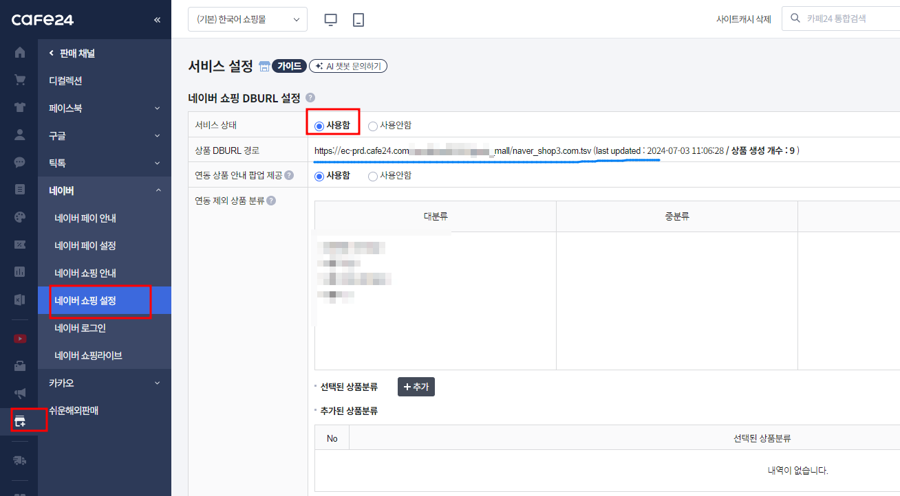 네이버쇼핑 - 카페24 자사몰 DB URL 등록 방법