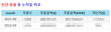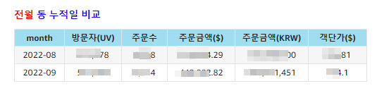 1. 전 월 누적일 비교 표 (전 월 동기간)