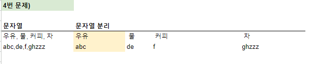 아래 화면처럼 되도록 함수를 사용해서 컴마 (,) 를 기준으로 단어를 분리해 주세요