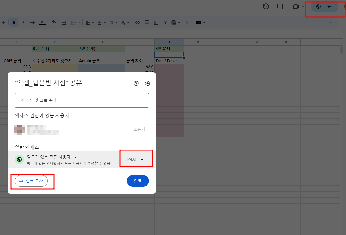 엑셀/구글스프레드시트 '함수' 공부하고 시험보기