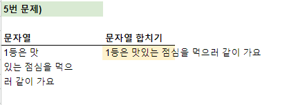 아래 화면처럼 되도록 함수를 사용해서 B22, B23, B24 를 한 문장으로 연결해주세요