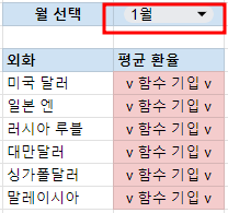 F4 셀에서 월을 선택하면 해당월에 맞는 외화별 환율을 찾아오도록
