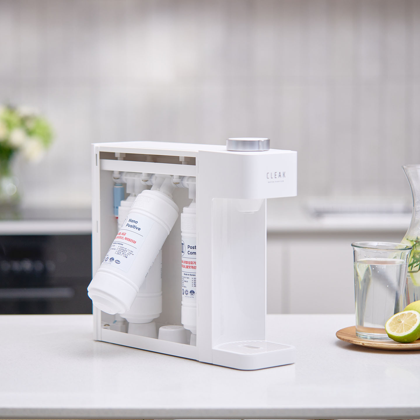 클릭 정수기는 필터를 3개를 사용하는데 (멀티 프리카본 필터, 나노 파지티브 필터, 포스트 콤포지트 필터)
