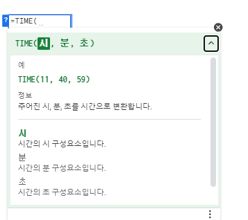 Time 함수는 주어진 시,분,초를 시간으로 변환해서 반환해주는 함수입니다.