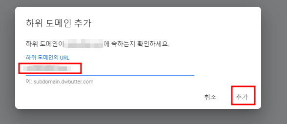 생성한 하위도메인 주소를 입력하고 변경사항 저장