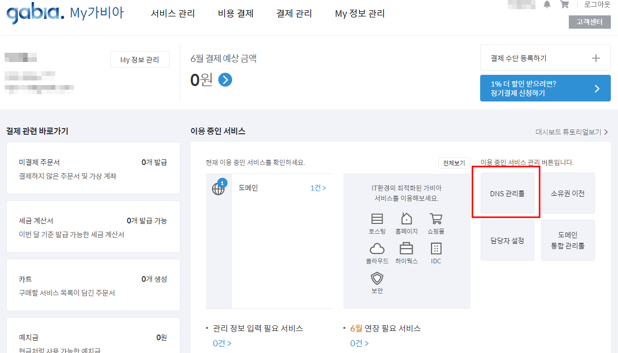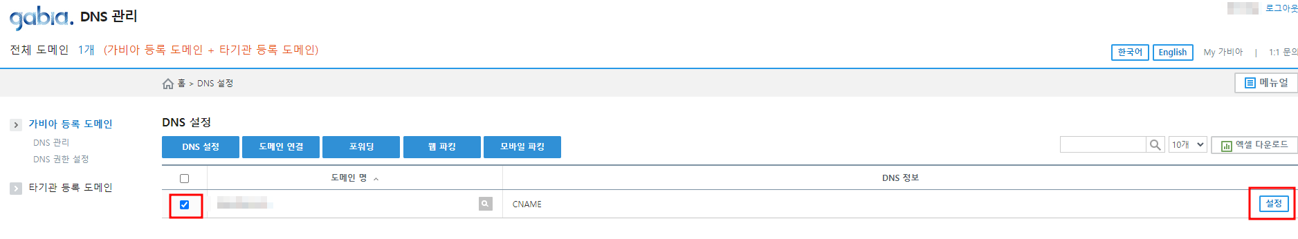 저는 도메인을 가비아에서 구매했기때문에