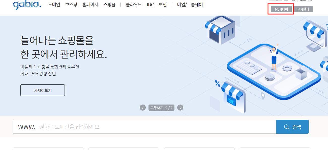 가비아 로그인 후 우측 상단에 My가비아 버튼 클릭