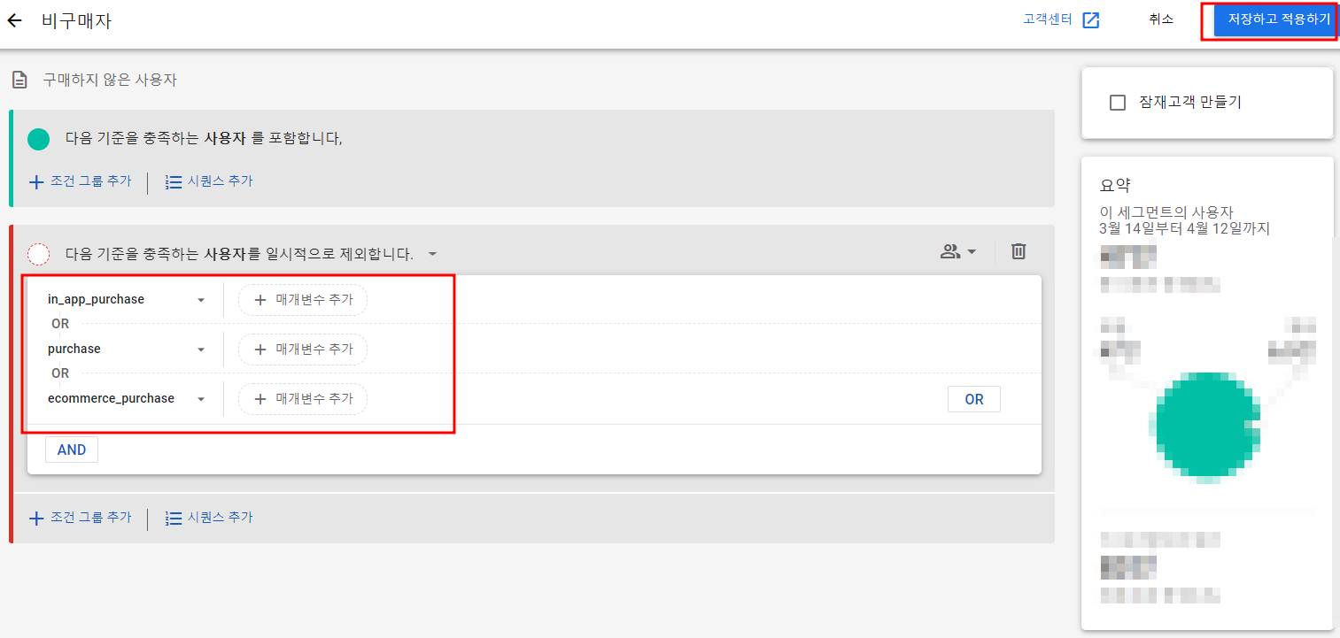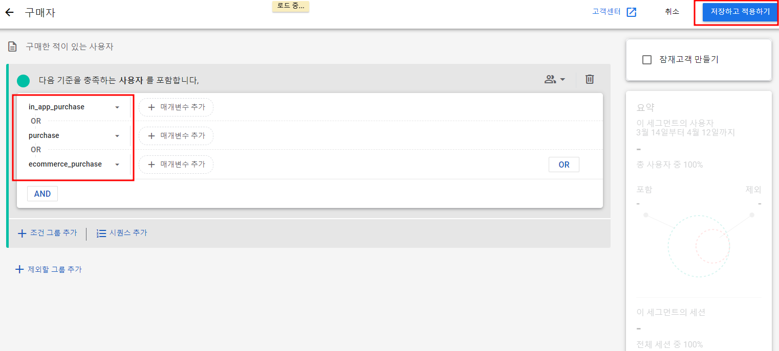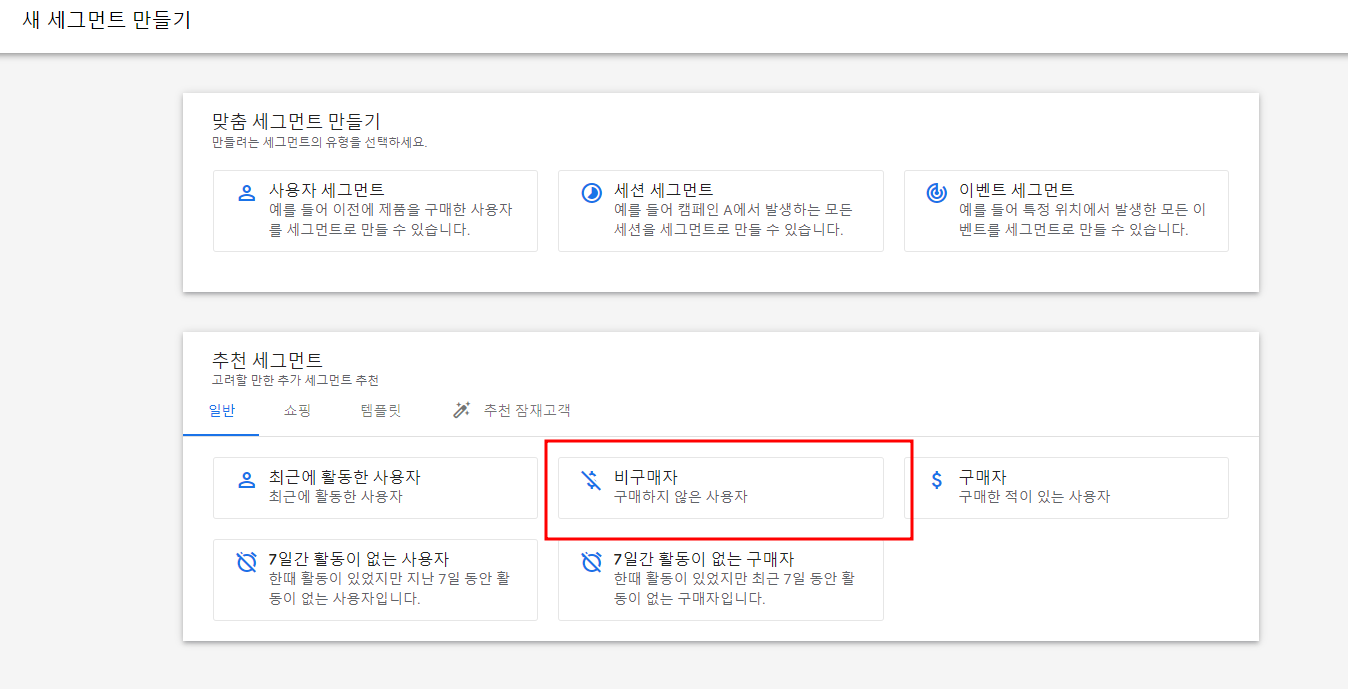 새 세그먼트 만들기에서 "구매자" 세그먼트 먼저 만들어보자