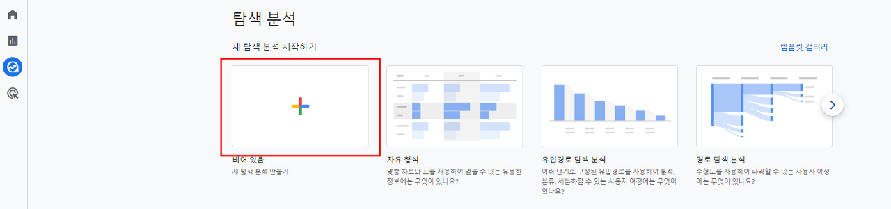 GA4 접속해서 "탐색" 메뉴 -> 비어 있는 새 탐색 분석 만들기
