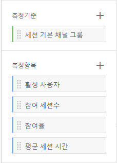 ㄴ 활성 사용자, 참여 세션수, 참여율, 평균 세션 시간
