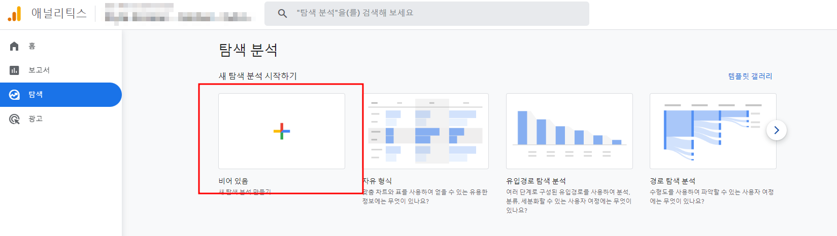 탐색 분석 이름 설정