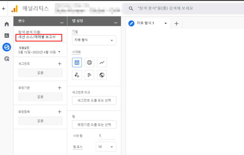 GA4 - 세션 소스/매체별 보고서 만들기 (탐색 분석)