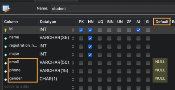 컬럼의 Defalt 값도 설정할 수 있는데,
