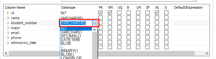 VARCHAR 뒤 숫자는 최대 받을 수 있는 길이 45자