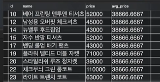 SELECT id, name, price, (SELECT AVG(price) FROM item) AS avg_price