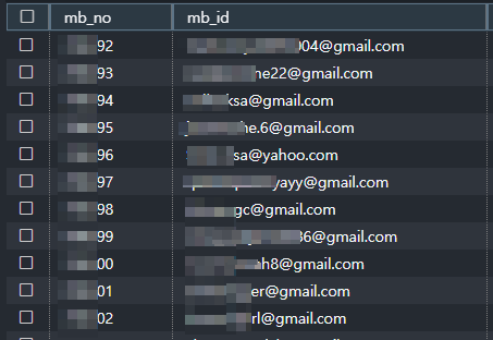 아래와 같은 멤버 테이블 (메일주소가 회원 아이디) 에서 @를 기준으로 문자를 분리해서