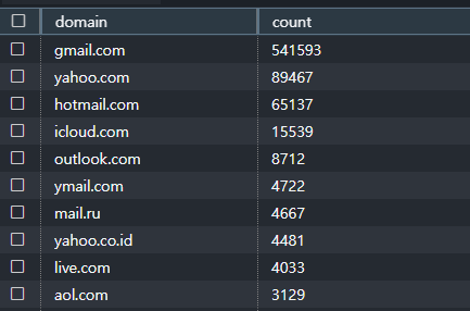 @ 뒤에 나오는 도메인들 기준으로 몇개씩 메일이 있는지 카운트 해보려고 한다.