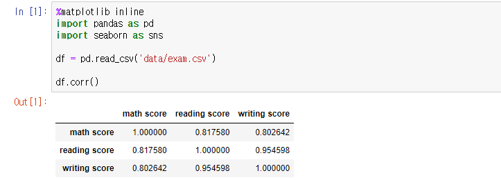 df.corr() # 데이터프레임 df 상관관계 구하기