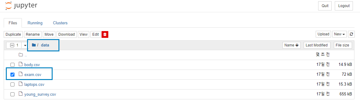 쥬피터 노트북 Files에 data 폴더를 만들고 그 안에