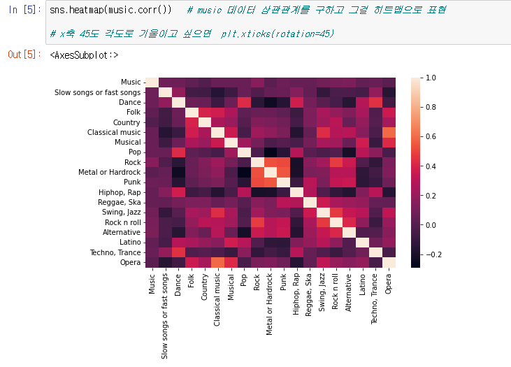 sns.heatmap(music.corr()) # music 데이터 상관관계를 구하고 그걸 히트맵으로 표현