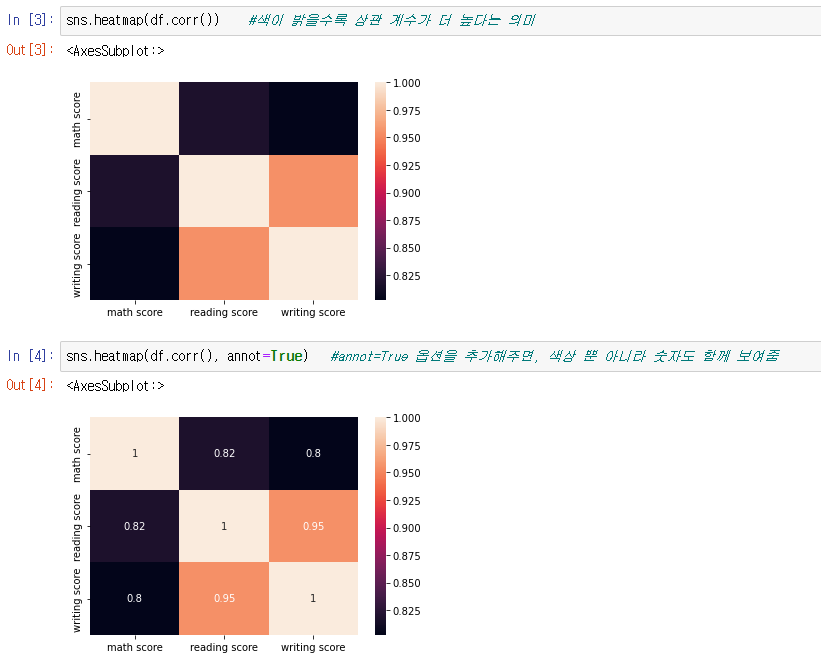seaborn 라이브러리의 히트맵을 이용해서 시각화 할것이다.