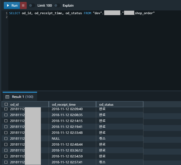( *참고 : 캡쳐화면은 AWS Redshift 화면이며 postgreSQL 기반입니다. )