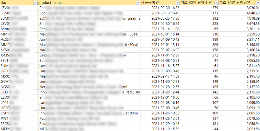 각 SKU 별 상품등록 후 최초 30일간의 판매 데이터를 보고 파악할 수 있다.