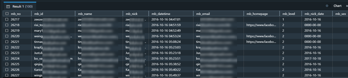 id, name, nick_name, 가입일(mb_datetime), email 기타등등