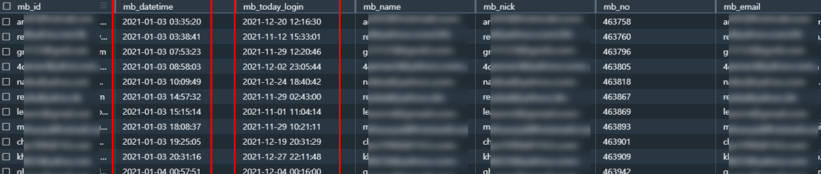 mb_today_login 은 마지막으로 로그인 한 날짜가 저장되는 컬럼이다.