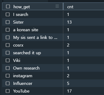 빈칸은 고객이 가입경로 체크 안한 것 ㅎㅎ